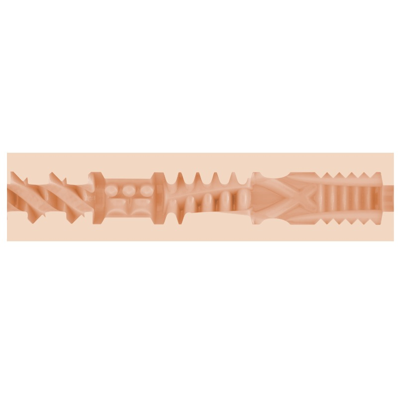 Possui duas tampas, uma principal, que cobre a parte externa da manga, e uma inferior com a qual você pode regular o nível de pressão e consequentemente a masturbação.